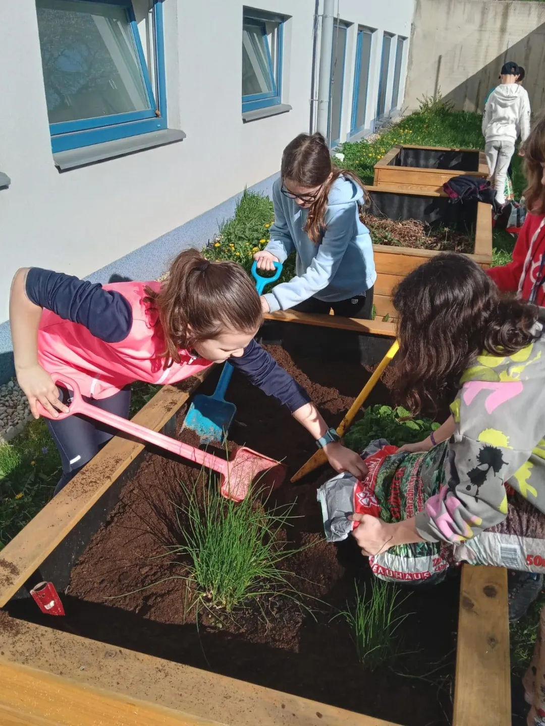Na závěr dne se žáci vydali na školní zahradu, kde se společně zapojili do praktických činností spojených s vodou a životním prostředím. Zasadili bylinky, které pomáhají zachovat půdní vlhkost a podporují biodiverzitu, a připravili vyvýšené záhony pro nadcházející zahradnickou sezónu.